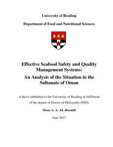 Al-Busaidi, M. A. A. (2017) Effective seafood safety and quality management systems: an analysis of the situation in the Sultanate of Oman. PhD thesis, University of Reading.