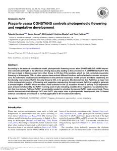 Kurokura, T., Samad, S., Koskela, E., Mouhu, K. and Hytönen, T. (2017) Fragaria vesca CONSTANS controls photoperiodic flowering and vegetative development. Journal of Experimental Botany, 68 (17). pp. 4839-4850. ISSN 0022-0957 doi: 10.1093/jxb/erx301