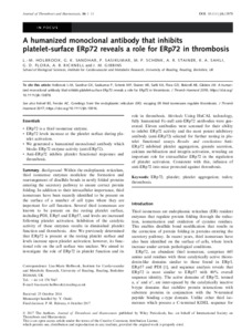 10 Jordan PA, Stevens JM, Hubbard GP, Barrett NE, Sage T, Authi KS, Gibbins JM. A role for the thiol isomerase protein ERP5 in platelet function. Blood. 2005; 105: 1500-7. 10.1182/blood-2004-02-0608.