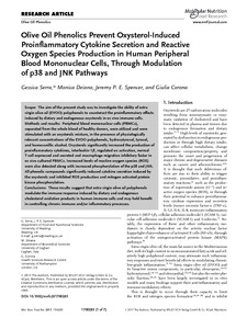 Olive oil phenolics prevent oxysterol-induced proinflammatory cytokine secretion and reactive oxygen species production in human peripheral blood mononuclear cells, through modulation of p38 and JNK pathways.