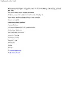 Dixon, T. ORCID: https://orcid.org/0000-0002-4513-6337, Lannon, S. and Eames, M. (2018) Reflections on disruptive energy innovation in urban retrofitting: methodology, practice and policy. Energy Research & Social Science, 37. pp. 255-259. ISSN 2214-6296 doi: 10.1016/j.erss.2017.10.009