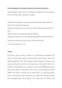Fluoride degradable and thermally debondable polyurethane based adhesive.