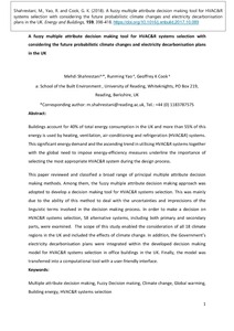 A fuzzy multiple attribute decision making tool for HVAC&R systems selection with considering the future probabilistic climate changes and electricity decarbonisation plans in the UK.