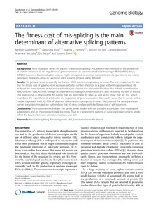 Saudemont, B., Popa, A., Parmley, J. L., Rocher, V., Blugeon, C., Necsulea, A., Meyer, E. and Duret, L. (2017) The fitness cost of mis-splicing is the main determinant of alternative splicing patterns. Genome Biology, 18. 208. ISSN 1474-760X doi: 10.1186/s13059-017-1344-6