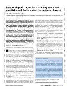 Relationship of tropospheric stability to climate sensitivity and Earth’s observed radiation budget.