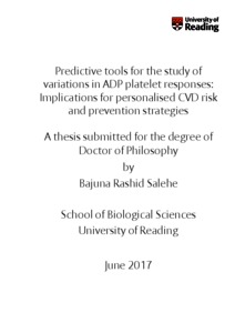Salehe, B. R. (2017) Predictive tools for the study of variations in ADP platelet responses: implications for personalised CVD risk and prevention strategies. PhD thesis, University of Reading.