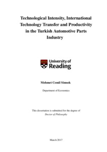 Simsek, M. C. (2017) Technological intensity, international technology transfer and productivity in the Turkish automotive parts industry. PhD thesis, University of Reading.