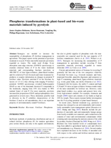 Robinson, J. S., Baumann, K., Hu, Y., Hagemann, P., Kebelmann, L. and Leinweber, P. (2018) Phosphorus transformations in plant-based and bio-waste materials induced by pyrolysis. Ambio, 47 (Suppl 1). pp. 73-82. ISSN 1654-7209 doi: 10.1007/s13280-017-0990-y