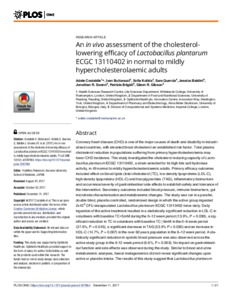 An in vivo assessment of the cholesterol-lowering efficacy of Lactobacillus plantarum ECGC 13110402 in normal to mildly hypercholesterolaemic adults