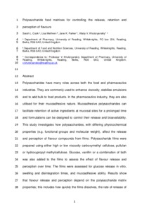 Polysaccharides have many roles across both the food and pharmaceutics industries. They are commonly used to enhance viscosity, stabilise emulsions and to add bulk to food products. In the pharmaceutics industry, they are also utilised for their mucoadhesive nature. Mucoadhesive polysaccharides can facilitate retention of active ingredients at mucosal sites for a prolonged time and formulations can be designed to control their release and bioavailability. This study investigates how polysaccharides, with differing physicochemical properties (e.g. functional groups and molecular weight), affect the release and perception of flavour compounds from films. Polysaccharide films were prepared using either high or low viscosity carboxymethyl cellulose, pullulan or hydroxypropyl methylcellulose. Glucose, vanillin or a combination of both was also added to the films to assess the effect of flavour release and perception over time. The films were assessed for glucose release in vitro, swelling and disintegration times, and mucoadhesive ability. Results show that flavour release and perception depend on the polysaccharide matrix properties; this includes how quickly the films dissolves, the rate of release of tastant compounds, and the mucoadhesive strength of the polysaccharide. A higher viscosity and slower disintegration time resulted in slower release of glucose in vitro and flavour perception in vivo.