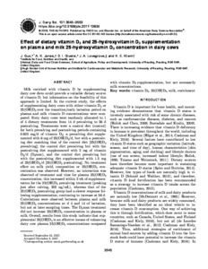 Effect of dietary vitamin D3 and 25-hydroxyvitamin D3 supplementation on plasma and milk 25-hydroxyvitamin D3 concentration in dairy cows.