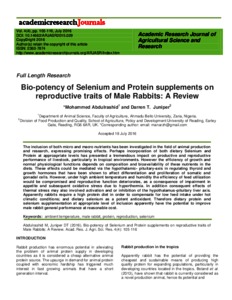 The inclusion of both micro and macro nutrients has been investigated in the field of animal production and research, expressing promising effects. Perhaps incorporation of both dietary Selenium and Protein at appropriate levels has presented a tremendous impact on productive and reproductive performance of livestock, particularly in tropical environments. However the efficiency of growth and normal physiological functions depends on composition and bioavailability of these nutrients in the diets. These effects could be mediated via the hypothalamic- pituitary-axis in regulating thyroid and growth hormones that have been shown to affect differentiation and proliferation of somatic and gonadal cells. However, under high ambient temperature and humidity the efficiency of feed utilization would be compromised and reproductive function deteriorates, as a consequence of impairment in appetite and subsequent oxidative stress due to hyperthermia. In addition consequent effects of thermal stress may also involved activation and or inhibition of the hypothalamus-pituitary liver axis. Apparently rabbits require a high protein diet in order to compensate for low feed intake under hot climatic conditions; and dietary selenium as a potent antioxidant. Therefore dietary protein and selenium supplementation at appropriate level of inclusion apparently have the potential to improve male rabbit general performance at reasonable cost.