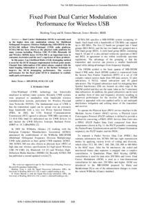 Yang, R. and Sherratt, R. S. ORCID: https://orcid.org/0000-0001-7899-4445 (2009) Fixed point dual carrier modulation performance for wireless USB. In: IEEE International Symposium on Consumer Electronics, June 2009, Kyoto, Japan, pp. 235-238.