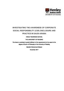 Aldosari, A. M. (2017) Investigating the awareness of corporate social responsibility (CSR) disclosure and practice in Saudi Arabia. PhD thesis, University of Reading.