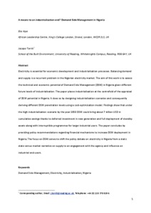 A means to an industrialisation end? Demand side management in Nigeria.