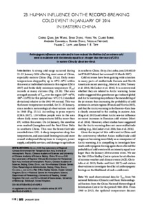 Human influence on the record-breaking cold event in January of 2016 in Eastern China.