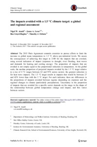 The impacts avoided with a 1.5 °C climate target: a global and regional assessment.