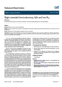 Gosney, M. A. (2017) Right extended hemicolectomy, falls and low B12. Medical and Clinical Archives, 1 (3). ISSN 2515-1053 doi: 10.15761/MCA.1000115