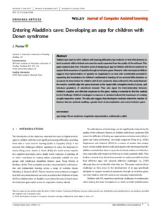 Porter, J. (2018) Entering Aladdin’s cave: developing an app for children with Down Syndrome. Journal of Computer Assisted Learning, 34 (4). pp. 429-439. ISSN 1365-2729 doi: 10.1111/jcal.12246