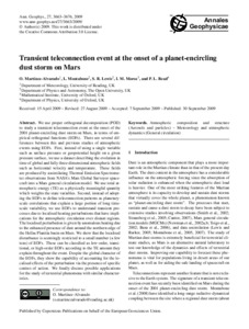 Transient teleconnection event at the onset of a planet-encircling dust storm on Mars.