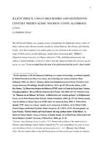 The scabrous eighteenth-century 'conte'"Nocrion" adapts an Old French fabliau to explore the unsayable and the feminine body via a series of distancing devices: antiquarianism, euphemism, and other languages. This article highlights the fidelity shown by one of its presumed authors (the Comte de Caylus) to the medieval sources, with reference to another, similar, work, "Les Manteaux". Adapting comic medieval sources is a means of exploring the nascent concerns of philology.