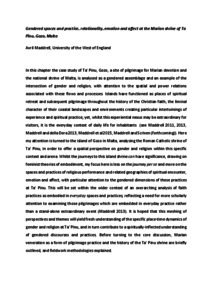 Maddrell, A. ORCID: https://orcid.org/0000-0003-2941-498X (2016) Gendered spaces and practice,relationality, emotion and affect at the Marian shrine of Ta Pinu, Gozo, Malta. In: Gemzöe, L., Keinänen, M.-L. and Maddrell, A. ORCID: https://orcid.org/0000-0003-2941-498X (eds.) Contemporary Encounters in Gender and Religion. Palgrave, London, pp. 219-240. ISBN 9783319425979 doi: 10.1007/978-3-319-42598-6_1