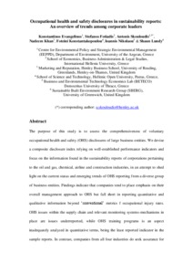 • Searcy C, Dixon SM, Neumann WP. 2016. The use of work environment performance indicators in corporate social responsibility reporting. Journal of Cleaner Production 112: 2907-2921.