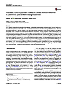 Forced decadal changes in the East Asian summer monsoon: the roles of greenhouse gases and anthropogenic aerosols