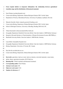 From tropical shelters to temperate defaunation: the relationship between agricultural transition stage and the distribution of threatened mammals