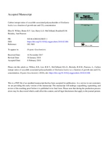 Wilkes, E. B., Lee, R. B. Y., McClelland, H. L.O., Rickaby, R. E.M. and Pearson, A. (2018) Carbon isotope ratioss of coccolith-associated polysaccharides of Emiliania huxleyi as a function of growth rate and CO2 concentration. Organic Geochemistry, 119. pp. 1-10. ISSN 0146-6380 doi: 10.1016/j.orggeochem.2018.02.006