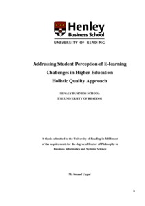 Uppal, M. A. (2017) Addressing student perception of E-learning challenges in Higher Education holistic quality approach. PhD thesis, University of Reading.