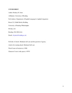 This article analyses the discursive construction of agency in narratives of 'mediated self-care', stories of disease management and/or recovery in which particular material or discursive technologies play a central part. Specifically, it analyses two stories of self-care, one told in the context of an Alcoholics Anonymous meeting, and the other told in the context of a Quantified Self 'meetup'. The analytical apparatus I will bring to bear on these data is mediated discourse analysis (Norris and Jones 2005; Scollon 2001), an approach to discourse whose primary focus is on the actions and identities made possible when people appropriate 'technologies' into particular situations (or 'sites of engagement'). The analysis focuses on how narrators construct their relationship with the technologies they use, how they describe the process of mastering these technologies, and how these technologies are represented as emblems of group membership. The analysis reveals how different kinds of technologies of self-care are associated with different constructions of the self and individual agency and different constructions of 'wellness'.