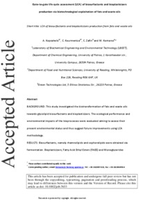 Kopsahelis, A., Kourmentza, C., Zafiri, C. and Kornaros, M. (2018) Gate-to-gate life cycle assessment of biosurfactants and bioplasticizers production via biotechnological exploitation of fats and waste oils. Journal of Chemical Technology and Biotechnology, 93 (10). pp. 2833-2841. ISSN 0268-2575 doi: 10.1002/jctb.5633