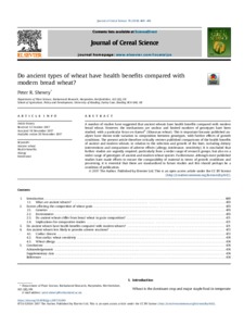 Shewry, P. R. (2018) Do ancient types of wheat have health benefits compared with modern bread wheat? Journal of Cereal Science, 79. pp. 469-476. ISSN 0733-5210 doi: 10.1016/j.jcs.2017.11.010