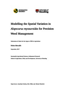 Metcalfe, H. (2017) Modelling the spatial variation in Alopecurus myosuroides for precision weed management. PhD thesis, University of Reading.
