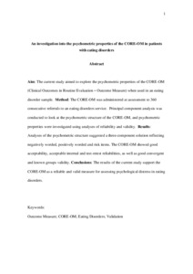 An investigation into the psychometric properties of the CORE-OM in patients with eating disorders.