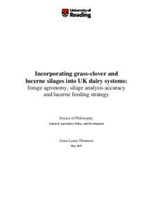 Thomson, A. L. (2017) Incorporating grass-clover and lucerne silages into UK dairy systems: forage agronomy, silage analysis accuracy and lucerne feeding strategy. PhD thesis, University of Reading.