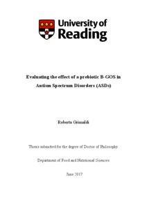 Grimaldi, R. (2017) Evaluating the effect of a prebiotic B-GOS in Autism Spectrum Disorders (ASDs). PhD thesis, University of Reading.