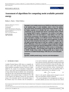Harris, B. L. and Tailleux, R. ORCID: https://orcid.org/0000-0001-8998-9107 (2018) Assessment of algorithms for computing moist available potential energy. Quarterly Journal of the Royal Meteorological Society, 144 (714). pp. 1501-1510. ISSN 1477-870X doi: 10.1002/qj.3297
