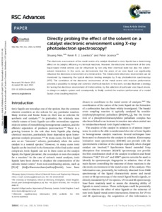 Men, S., Lovelock, K. R. J. ORCID: https://orcid.org/0000-0003-1431-269X and Licence, P. (2015) Directly probing the effect of the solvent on a catalyst electronic environment using X-ray photoelectron spectroscopy. RSC Advances, 5 (45). pp. 35958-35965. ISSN 2046-2069 doi: 10.1039/c5ra04662a