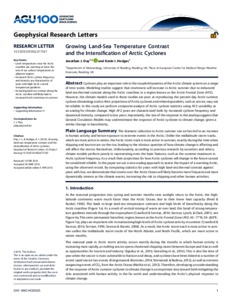 Growing land-sea temperature contrast and the intensification of Arctic cyclones.