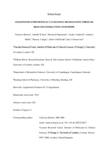 Barrese, V., Stott, J. B., Figueiredo, H. B., Aubdool, A. A., Hobbs, A. J., Jepps, T. A., McNeish, A. and Greenwood, I. A. (2018) Angiotensin II promotes KV7.4 channels degradation through reduced interaction with HSP90 (heat shock protein 90). Hypertension, 71 (6). pp. 1091-1100. ISSN 1524-4563 doi: 10.1161/HYPERTENSIONAHA.118.11116