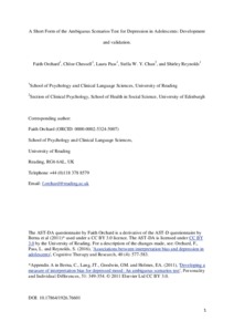 Orchard, F., Chessell, C., Pass, L., Chan, S. W. Y. and Reynolds, S., (2018) A short form of the ambiguous scenarios test for depression in adolescents: development and validation. Report. University of Reading doi: 10.17864/1926.76601 (Unpublished)