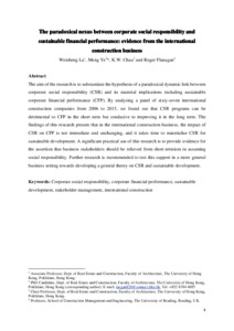 Lu, W., Ye, M., Chau, K. W. and Flanagan, R. (2018) The paradoxical nexus between corporate social responsibility and sustainable financial performance: evidence from the international construction business. Corporate Social Responsibility and Environmental Management, 25 (5). pp. 844-852. ISSN 1535-3958 doi: 10.1002/csr.1501