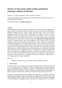 Barriers of solar energy uptake and the potential for mitigation solutions in Barbados