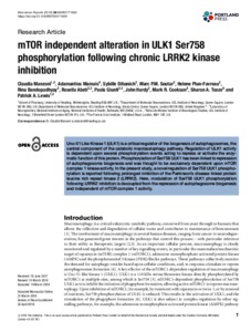 Manzoni, C., Mamais, A., Dihanich, S., Soutar, M. P. M., Plun-Favreau, H., Bandopadhyay, R., Abeti, R., Giunti, P., Hardy, J., Cookson, M. R., Tooze, S. A. and Lewis, P. A. (2018) mTOR independent alteration in ULK1 Ser758 phosphorylation following chronic LRRK2 kinase inhibition. Bioscience Reports, 38 (2). BSR20171669. ISSN 0144-8463 doi: 10.1042/BSR20171669