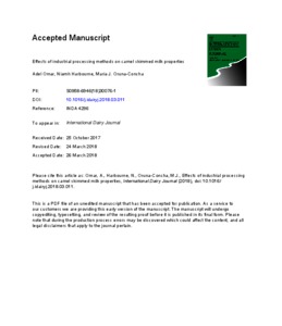 Effects of industrial processing methods on camel skimmed milk properties.