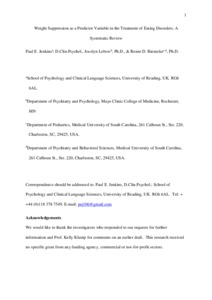Weight suppression as a predictor variable in the treatment of eating disorders: a systematic review.