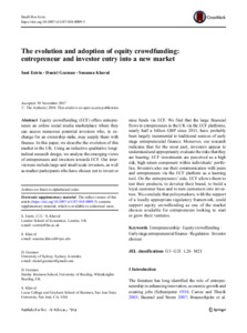 Equity crowdfunding (ECF) offers entrepreneurs an online social media marketplace where they can access numerous potential investors who, in exchange for an ownership stake, may supply them with finance. In this paper, we describe the evolution of this market in the UK. Using an inductive qualitative longitudinal research design, we analyse the emerging views of entrepreneurs and investors towards ECF. Our interviewees include large and small-scale investors, as well as market participants who have chosen not to invest or raise funds via ECF. We find that the large financial flows to entrepreneurs in the UK via the ECF platforms, nearly half a billion GBP since 2011, have probably been largely incremental to traditional sources of early stage entrepreneurial finance. Moreover, our research indicates that for the most part, investors appear to understand and appropriately evaluate the risks that they are bearing; ECF investments are perceived as a high risk, high return component within individuals’ portfolios. Investors also use their communication with peers and entrepreneurs via the ECF platform as a learning tool. On the entrepreneurs’ side, ECF allows them to test their products, to develop their brand, to build a loyal customer base and to turn customers into investors. We conclude that policymakers, with the support of a locally appropriate regulatory framework, could support equity crowdfunding as one of the market choices available for entrepreneurs looking to start or grow their ventures.