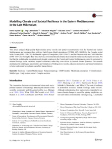 This article analyses high-quality hydroclimate proxy records and spatial reconstructions from the Central and Eastern Mediterranean and compares them with two Earth System Model simulations (CCSM4, MPI-ESM-P) for the Crusader period in the Levant (1095–1290 CE), the Mamluk regime in Transjordan (1260–1516 CE) and the Ottoman crisis and Celâlî Rebellion(1580–1610 CE). During the three time intervals, environmental and climatic stress tested the resilience of complex societies.We find that the multidecadal precipitation and drought variations in the Central and Eastern Mediterranean cannot be explained by external forcings (solar variations, tropical volcanism); rather they were driven by internal climate dynamics. Our research emphasises the challenges, opportunities and limitations of linking proxy records, palaeoreconstructions and model simulations to better understand how climate can affect human history.